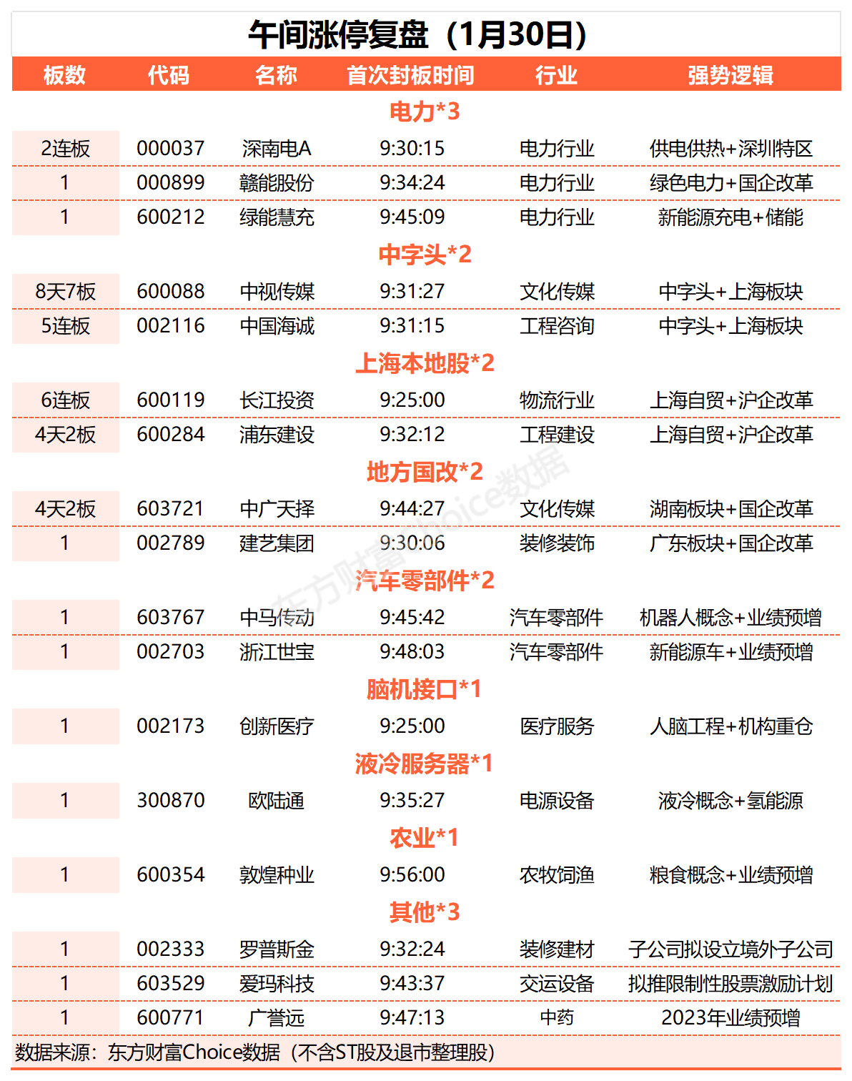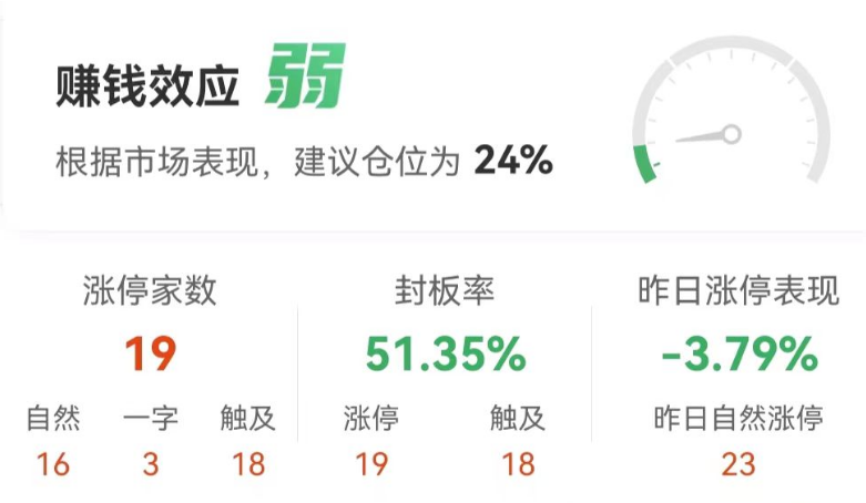 涨停股方面,截至午间收盘,共计19只个股涨停,另有18只个股一度触及涨停,封板率51.35%。